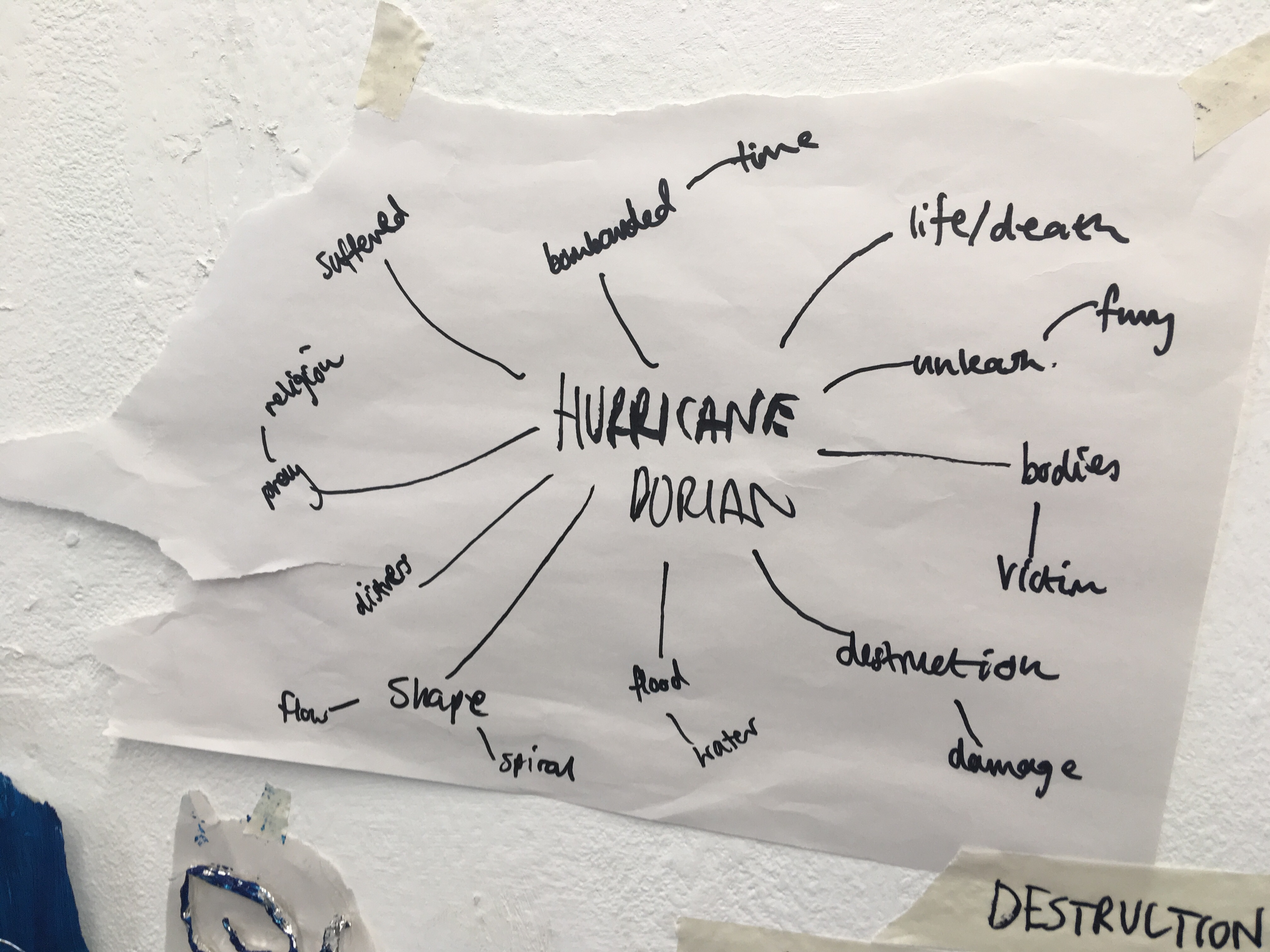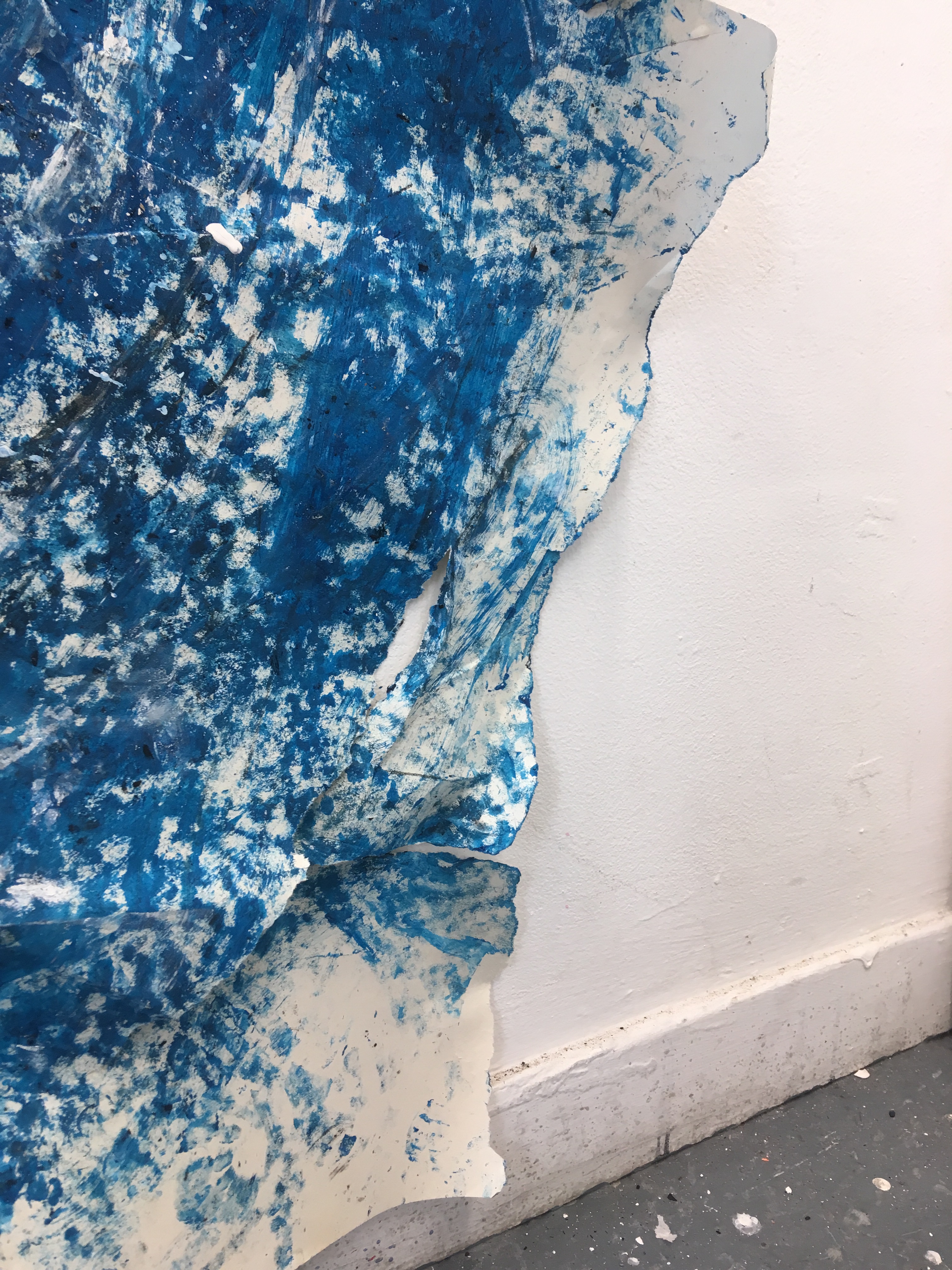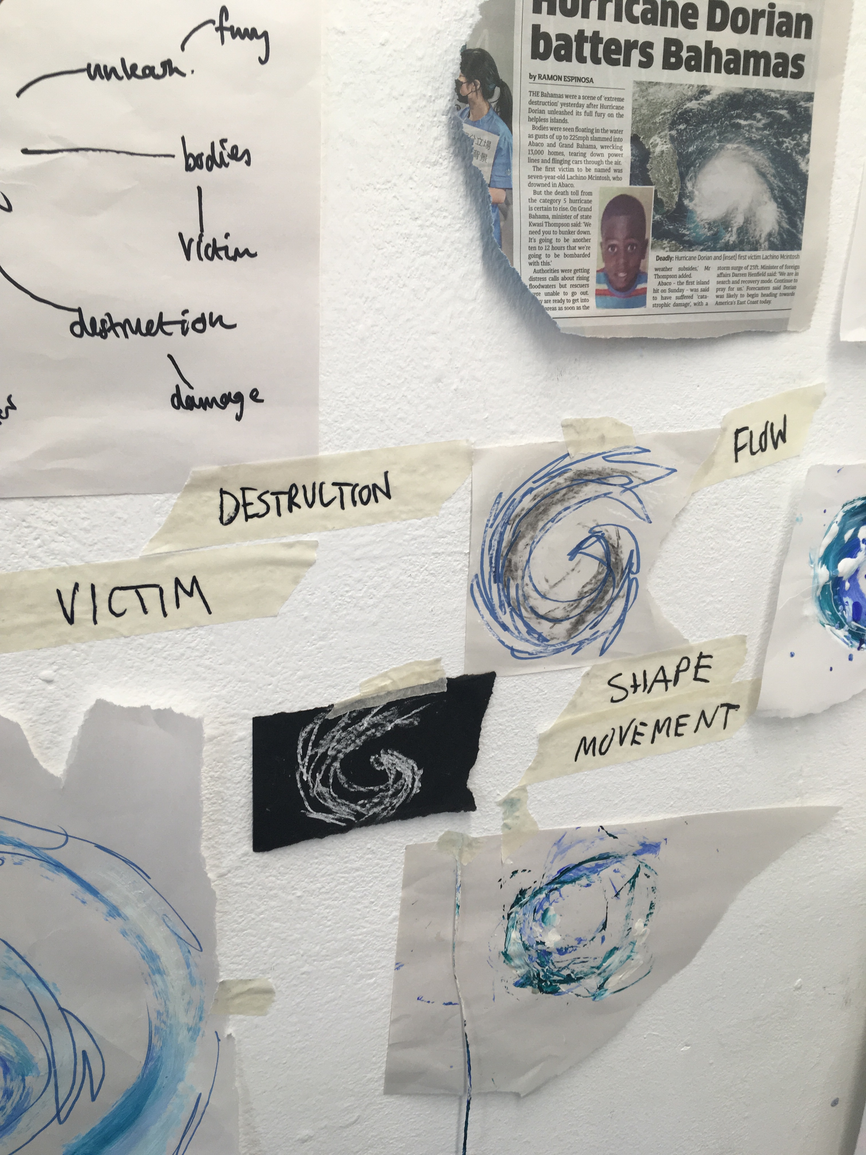 Inspired by the key word ‘destruction’ I thought of how this could be transferred in my work. The following pictures show my piece before, during, and after destruction. I did this by stomping on the piece, kicking it, and rubbing my hands on it. I added broken chalk and charcoal to this too to add colour and texture. I loved this effect and thought it had a huge impact on my work. It’s definitely a process I’d like to use in future work.