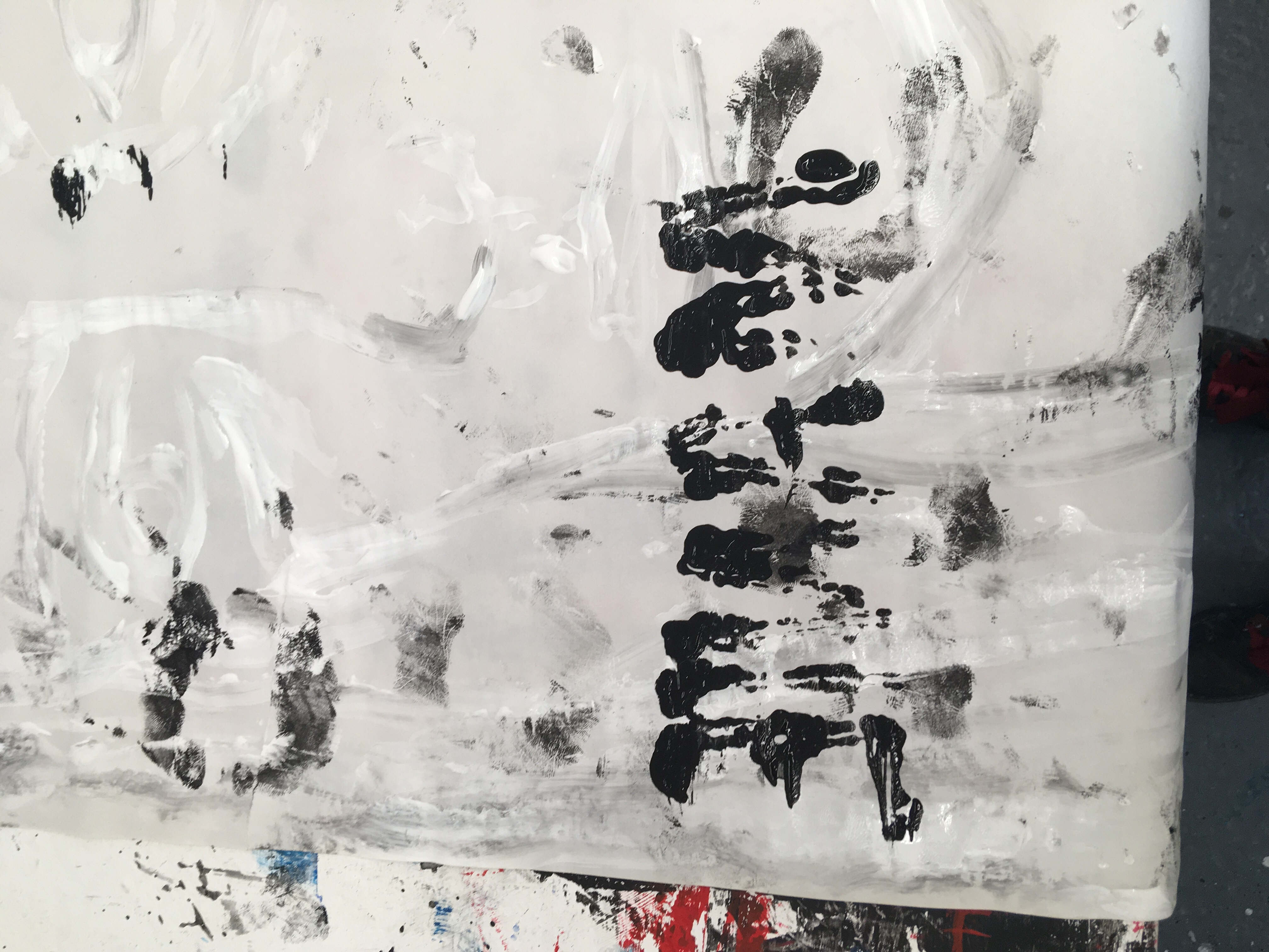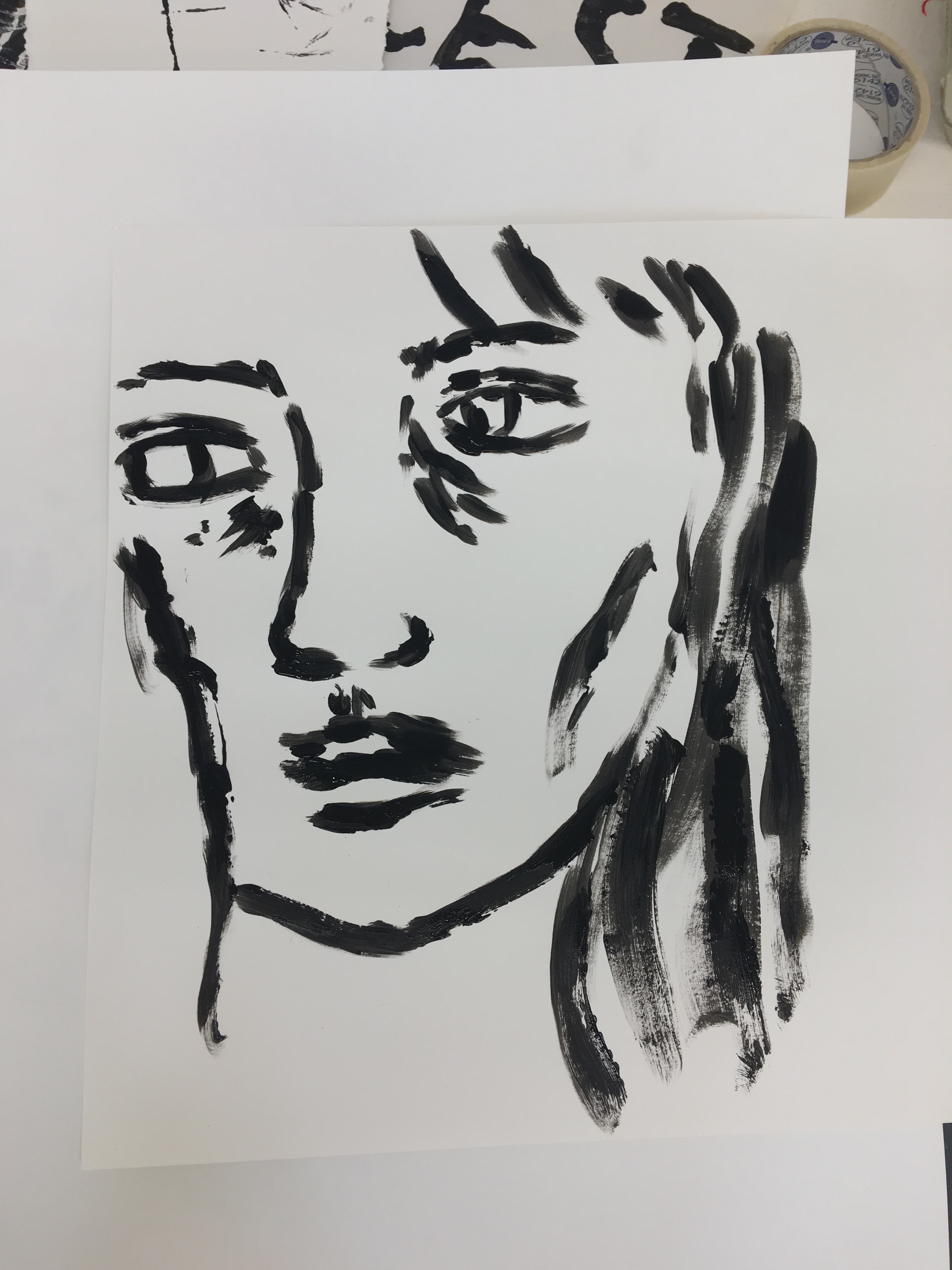 My final video uses media and imagery from my work throughout the past two weeks. For example, I use acrylic to paint red lines and make handprints over my face, similar to in my non video work. I also use some of the same techniques, such as using string dipped in paint, but on my body instead of paper. My actions are to visually resemble the feelings and physical/mental affects a manic episode can have on a person. I use myself as the subject matter to keeping with my ‘personal’ theme.