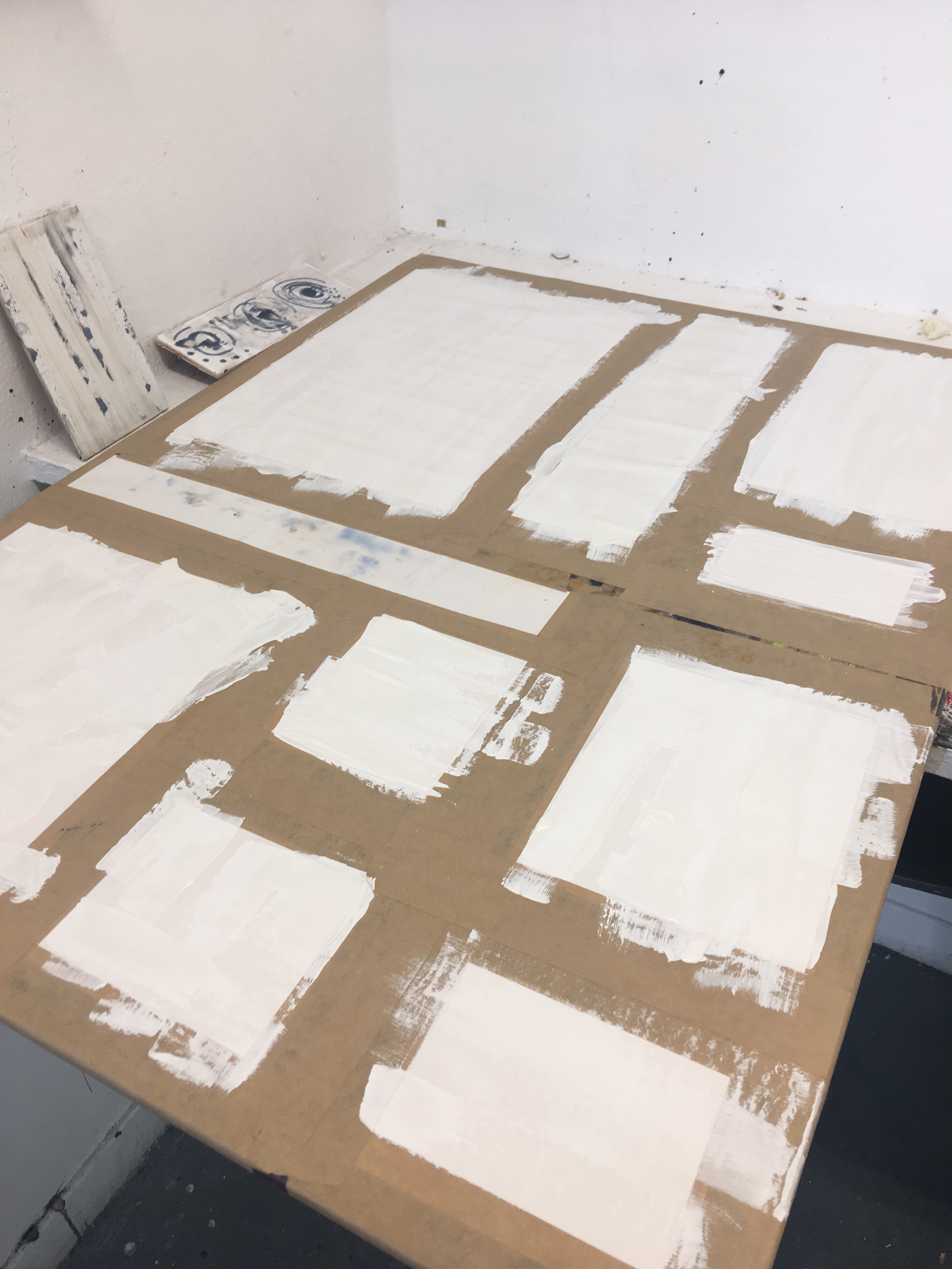 The week began with a tutorial on how to stretch paper. Although I have been enjoying working at a larger scale recently, I found it easier to stretch smaller pieces so decided to make multiple surfaces to work on.