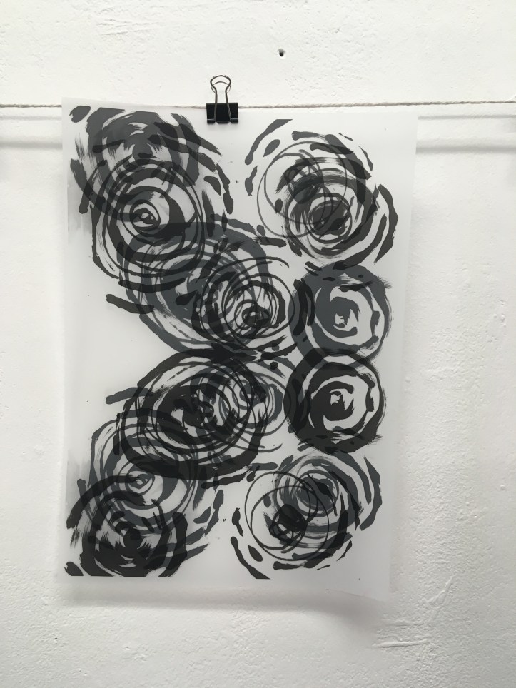 The first step of the screen printing process was to draw an A4 design onto acetate which related to my work from last week. I made the following initial designs.