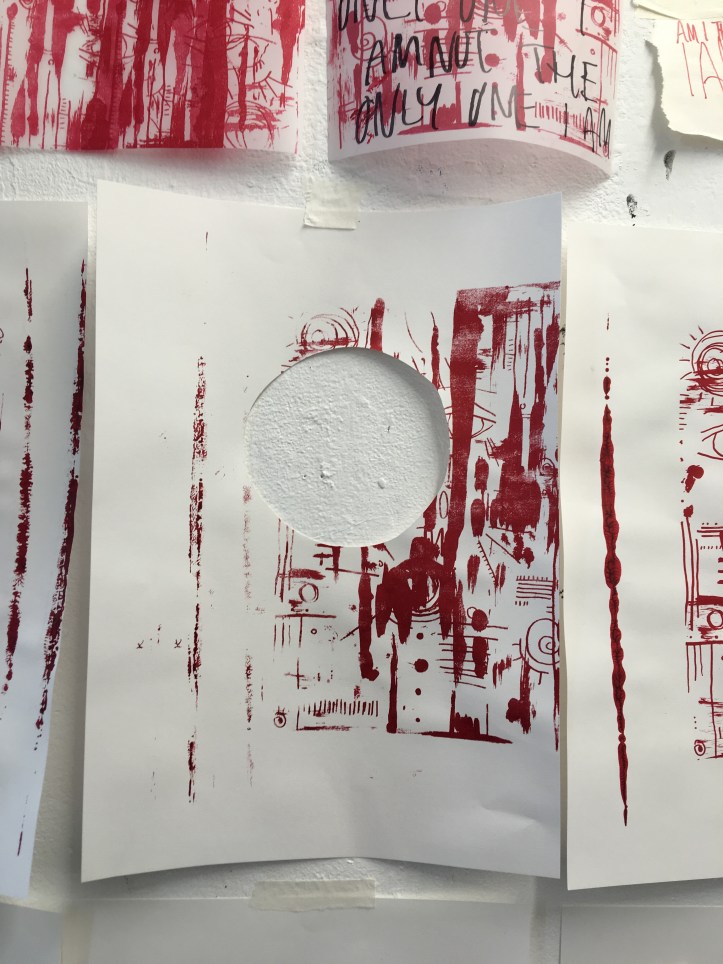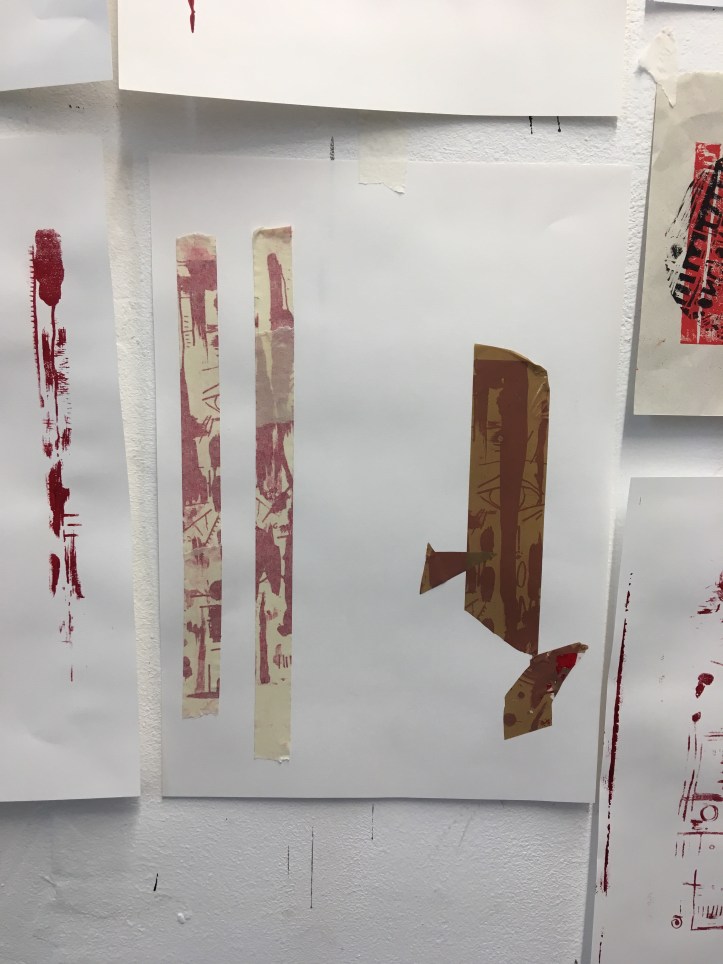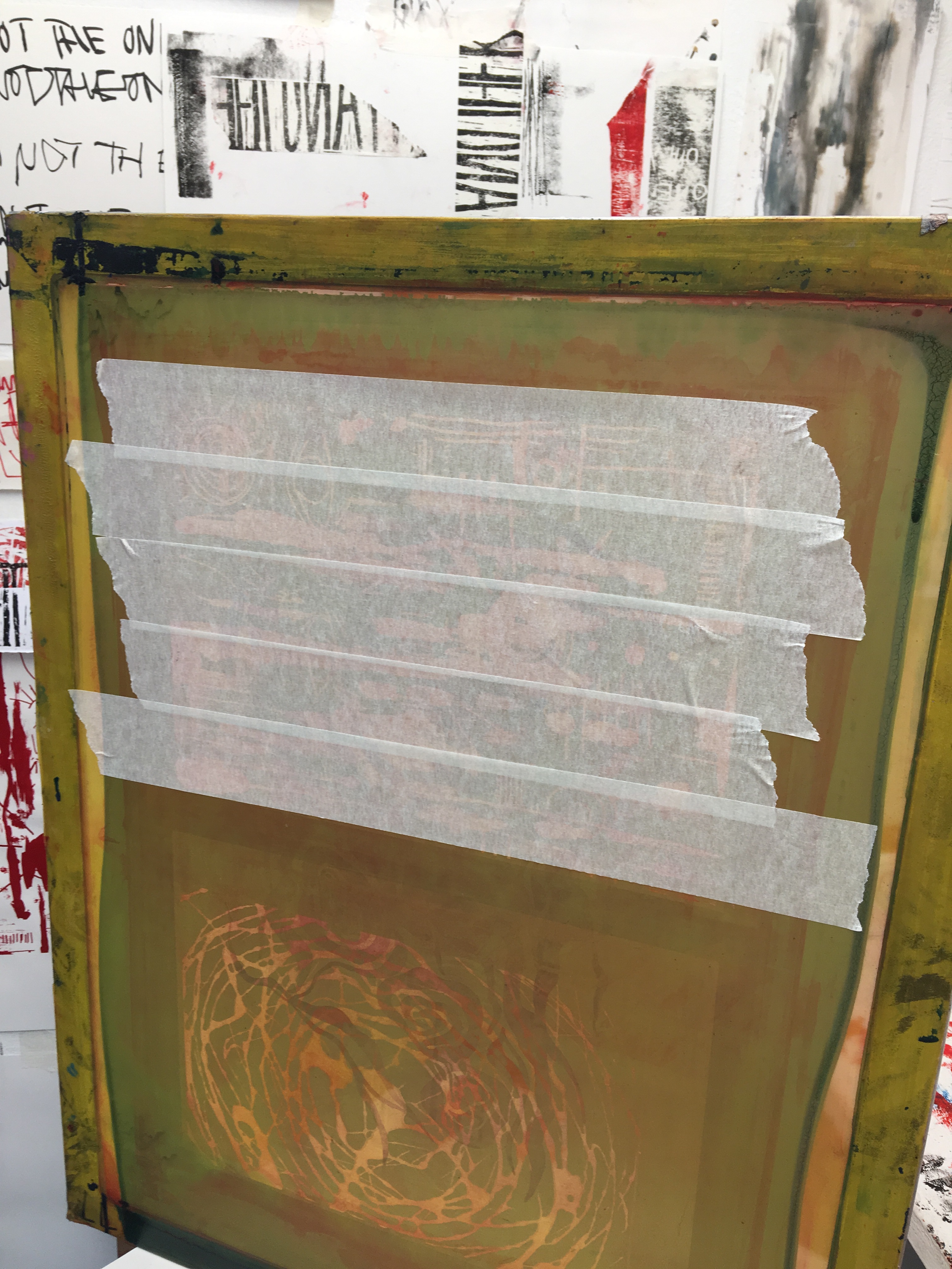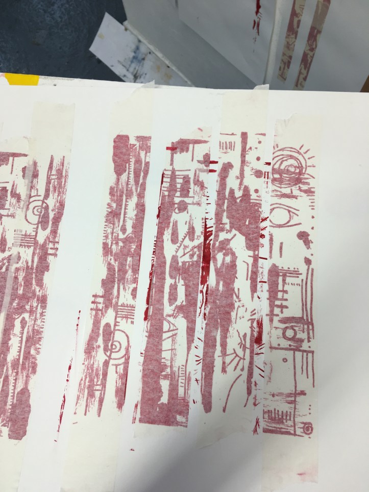 I then started to use masking and parcel tape to block out some of the print. I also saved the tape – which I wanted to experiment with further as I loved the outcome.