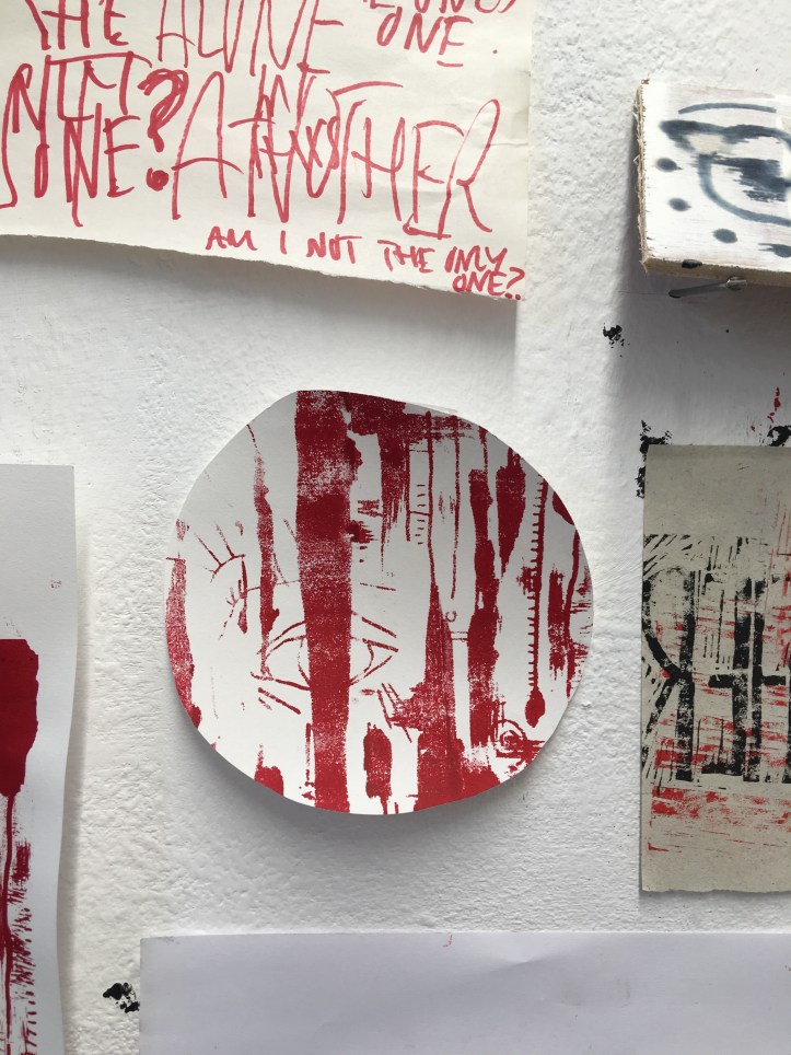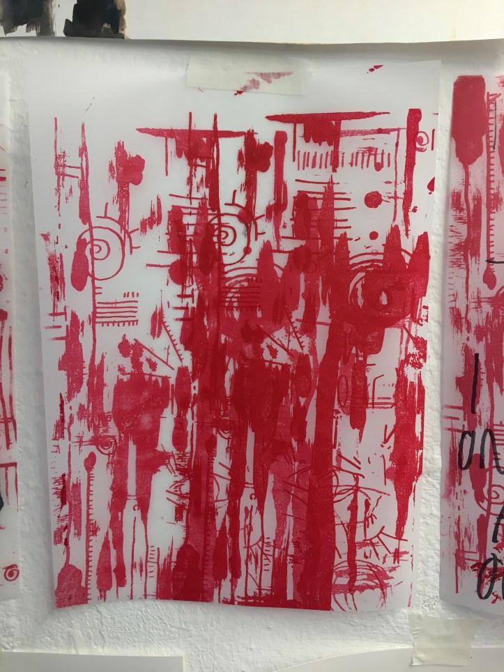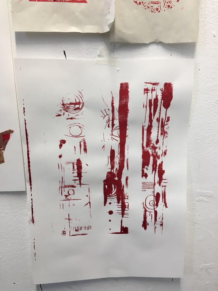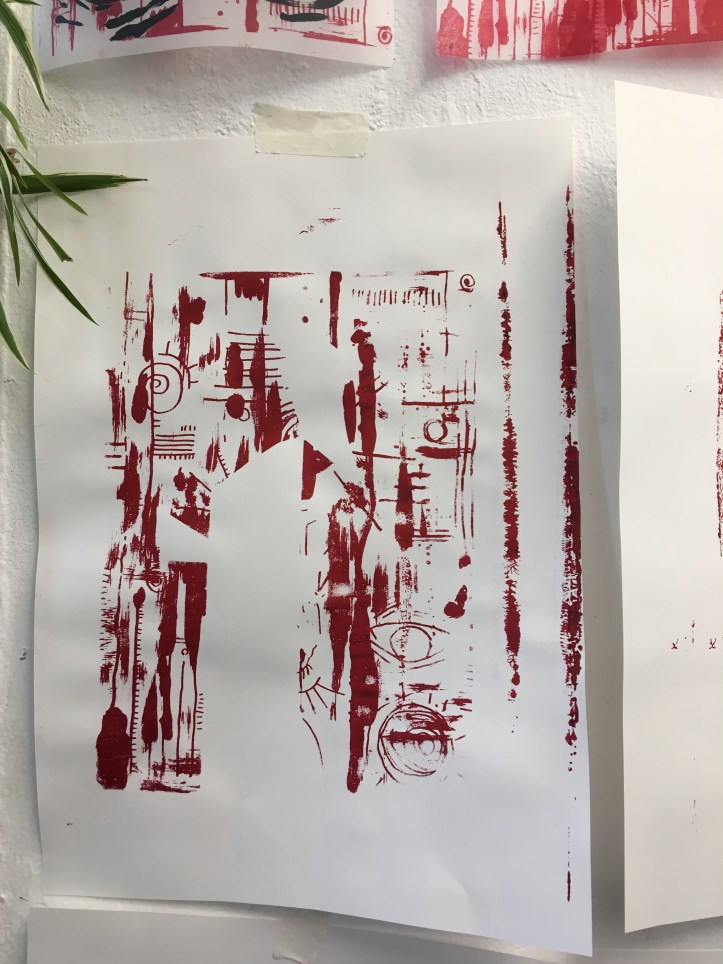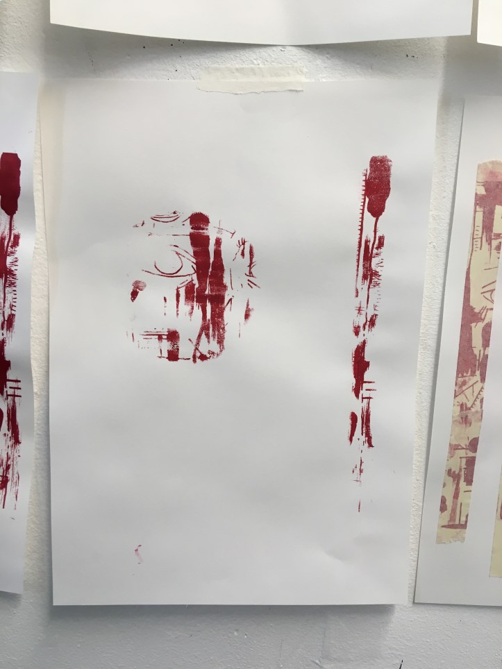 I then started to use masking and parcel tape to block out some of the print. I also saved the tape – which I wanted to experiment with further as I loved the outcome.