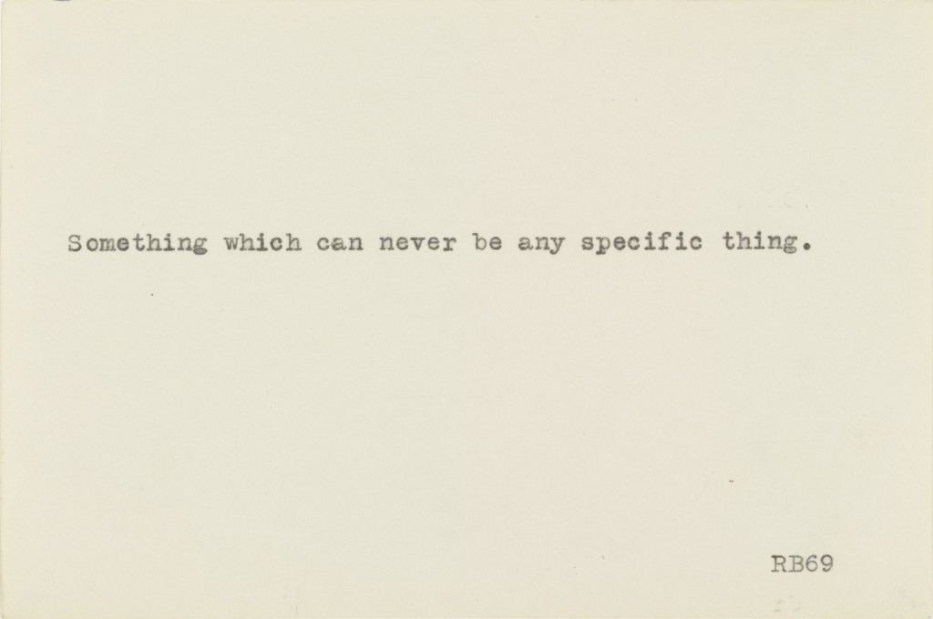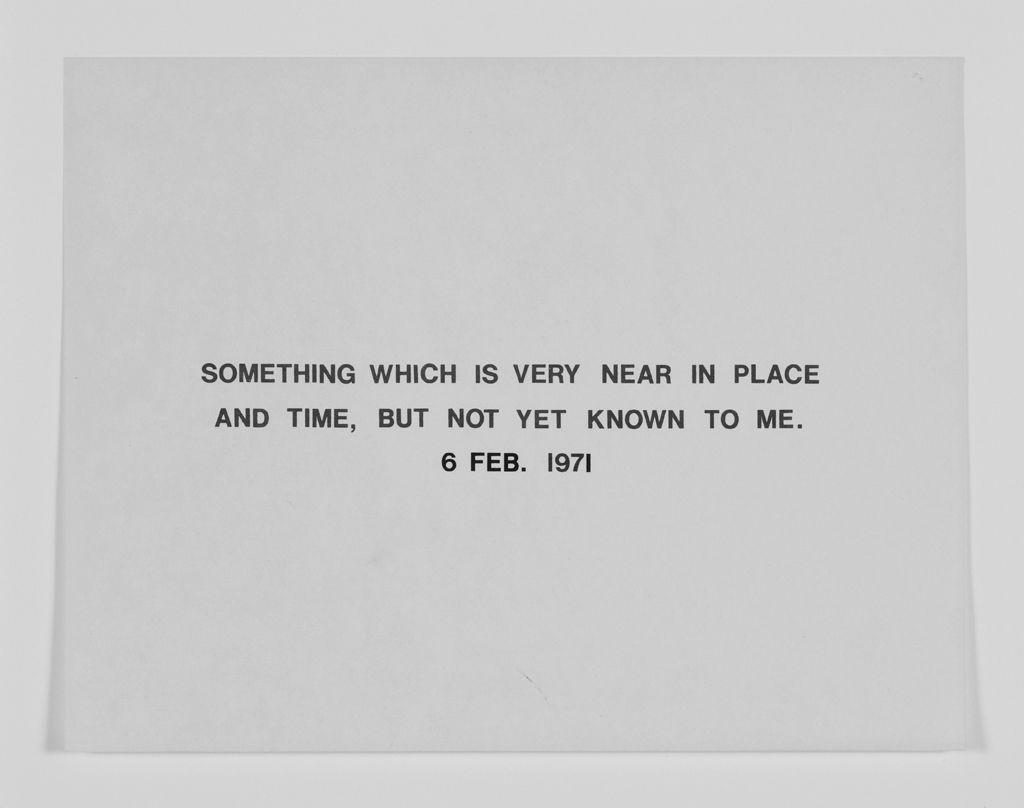 I am particularly interested in his language work. Barry’s conceptual text work, as seen below, often consists of questioning the concept of time and how the human brain thinks about things. I am inspired by his honest words which look as though he has just written down what he was thinking. It intrigues me that he has noted the date in a few of his pieces, as if he is keeping a written track of his thoughts throughout time – much like a diary. It almost seems as though he is referring to objects or thoughts which may or may not exist but are not physically shown. I am also interested in the plainness of these works, through lack of colour and very angular, simplified writing style – like a dumbed down visual representation of inexplainable and difficult thought processes which relate to describing an item or thought.