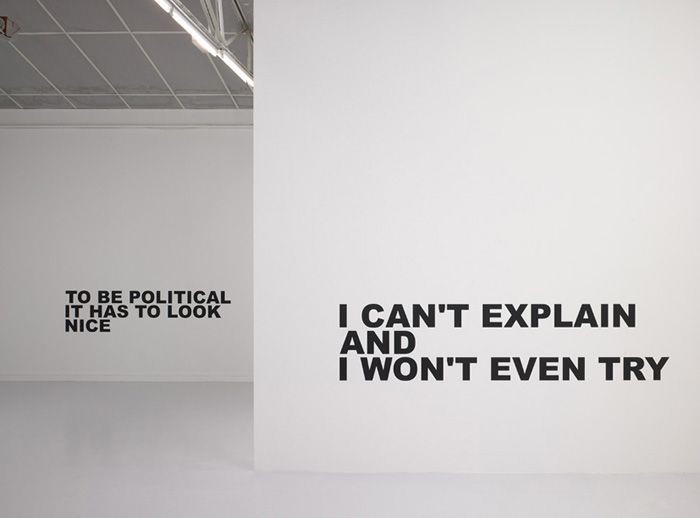 Stefan Brüggemann is a Mexican artist born 1975. His most famous work is that of his conceptual text installations – which I will be looking into as this has hugely inspired my current work. Although this is his most known work, Brüggemann also works with sculpture, video, painting and drawing. Brüggemann works in a non-apologetic and bold way through his minimalist text pieces, accredited to the conceptual artists of the 60s/70s who are remembered for questioning commercialised and traditional art.