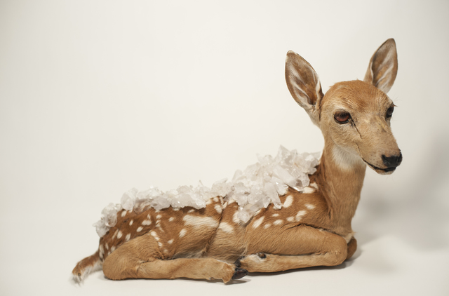 Furthermore, Montgomery explores the topic of afterlife by using taxidermy and his signature crystals. This can be seen in the piece below.