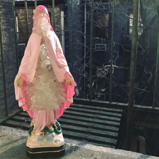 Kyle Montgomery’s use of crystals comes from his interest and admiration of the potential abilities crystals hold – which was originally introduced through Hinduism and Buddhism. Many to this day believe that these crystals have powers which can encourage emotional and spiritual healing. He is also deeply influenced by his upbringing as a Catholic, and has said to have always admired the Virgin Mary in particular as she is the Mother of the Earth.