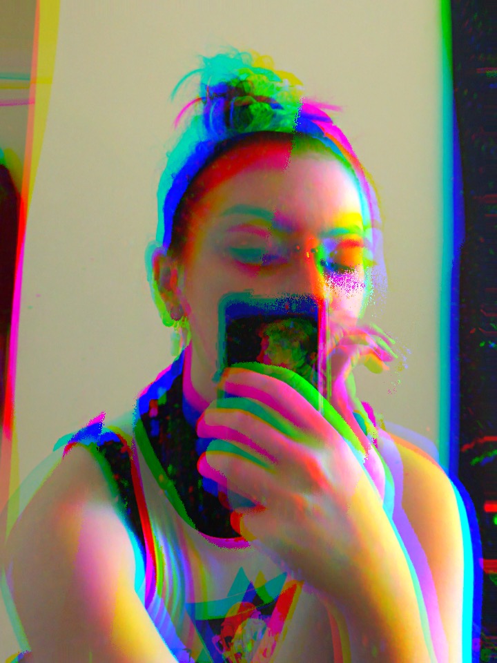 The images above gave me the idea to spend more time editing, but this time using photographs of myself. As mentioned in my previous post, I had initially attempted to use myself in photographs but felt unhappy with the results. To work around this, I started to edit myself to distort my appearance, using selfies taken throughout lockdown. I wanted to stick with the theme of digital glitches, so incorporated this through colour. These selfies, collected from March to now, are often my own way of documenting myself. My intention isn’t always to look nice, but to keep a diary of my appearance. I change how I look a lot through self expression, and thought this would be an interesting depiction of time passing and how much I’ve changed over the past 8 or so months. Below are my edited photographs of myself using Photoshop (slideshow 1) and Hyperspektiv (slideshow 2).