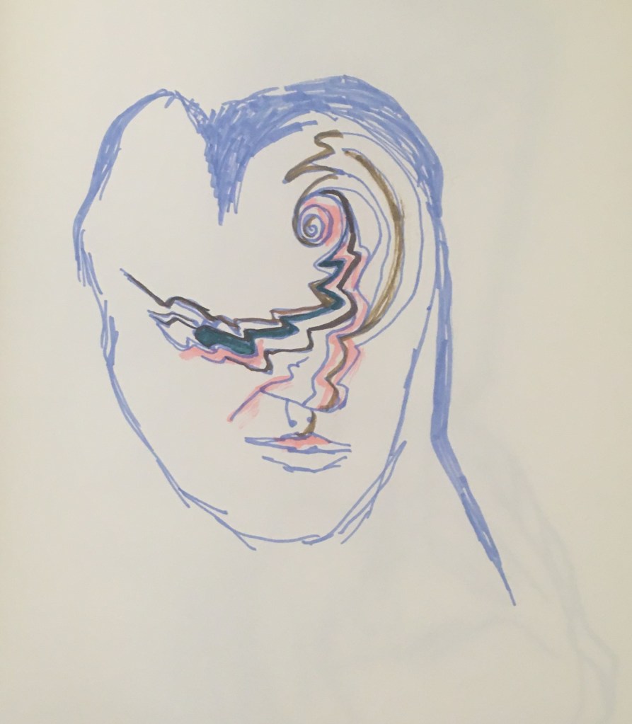 My work is obviously influenced by Cubism, an art movement which began in the early 1900s by artists Pablo Picasso and Georges Braque. Cubism is an art style in which reality is reinvented using geometric shapes and line, being the first abstract art style to go against formal and traditional styles. The way I am altering my face links directly to the work of Picasso due to the sharp edges, and distorted, almost unrecognisable subject matter. This is a way of remodelling how I look as a way to cope with the changes in my appearance over this year.