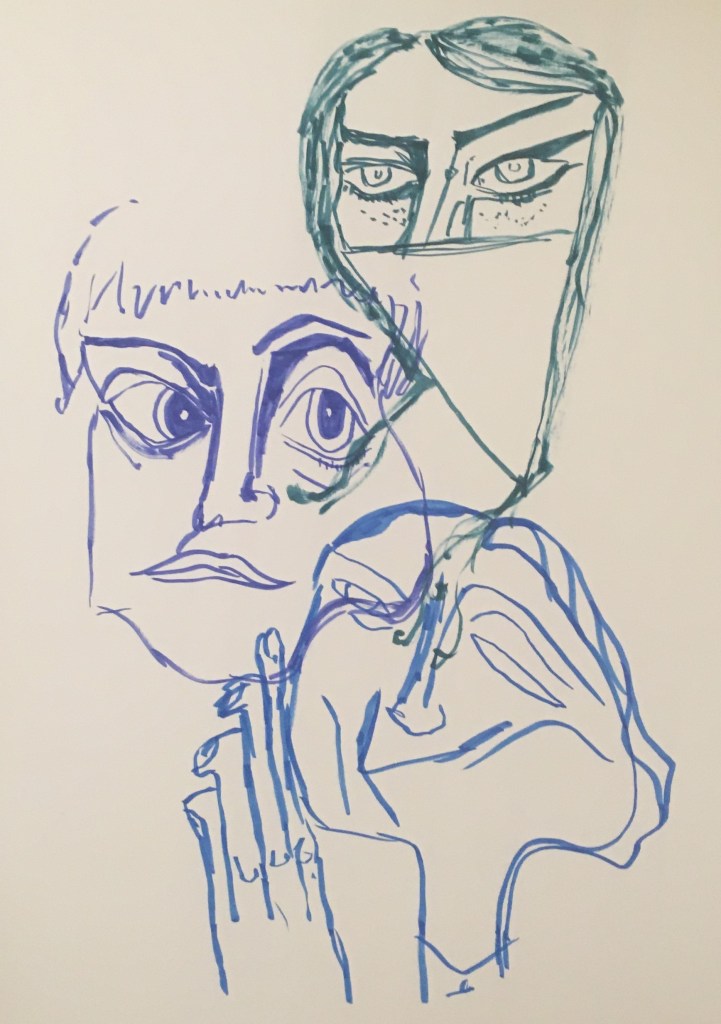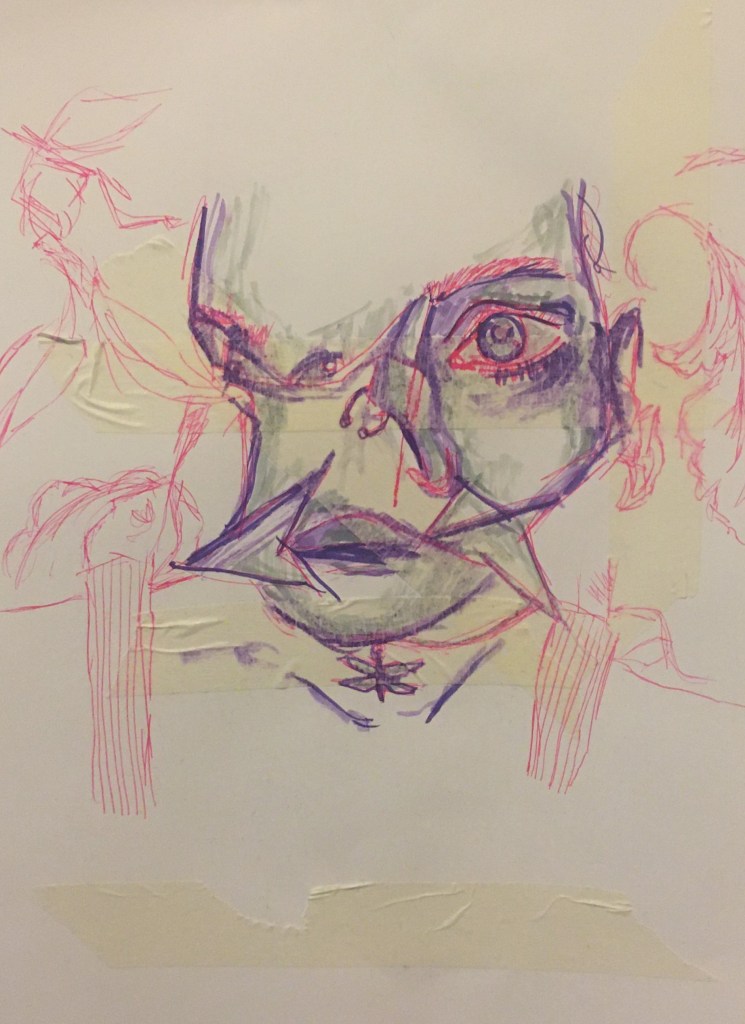 After the first week of creating work, I started to feel lost. I had a good few days that I felt stressed and was unsure of where to go next with my work. I have since been doing a lot of contextual research to help inspire me, as well as creating a few doodles of my edited photographs using acrylic and pen.