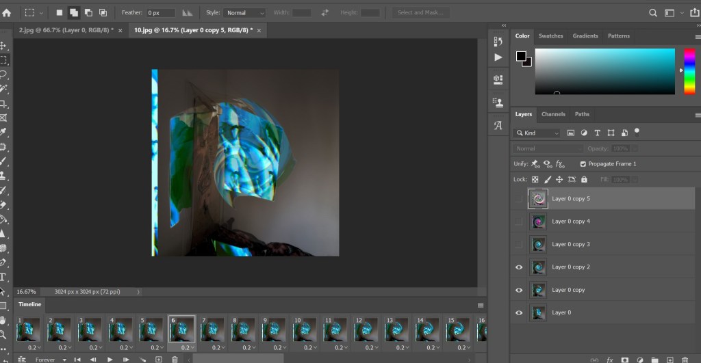 When exporting to save the file however, I was unable due to size restrictions on my laptop. I took a video of my screen for evidence purposes, although this problem does mean that I cannot use this technique further in my project, which is disappointing. Although the result maybe didn’t go to plan, I am proud and excited to have learned a new technique which I could possibly use in future projects.