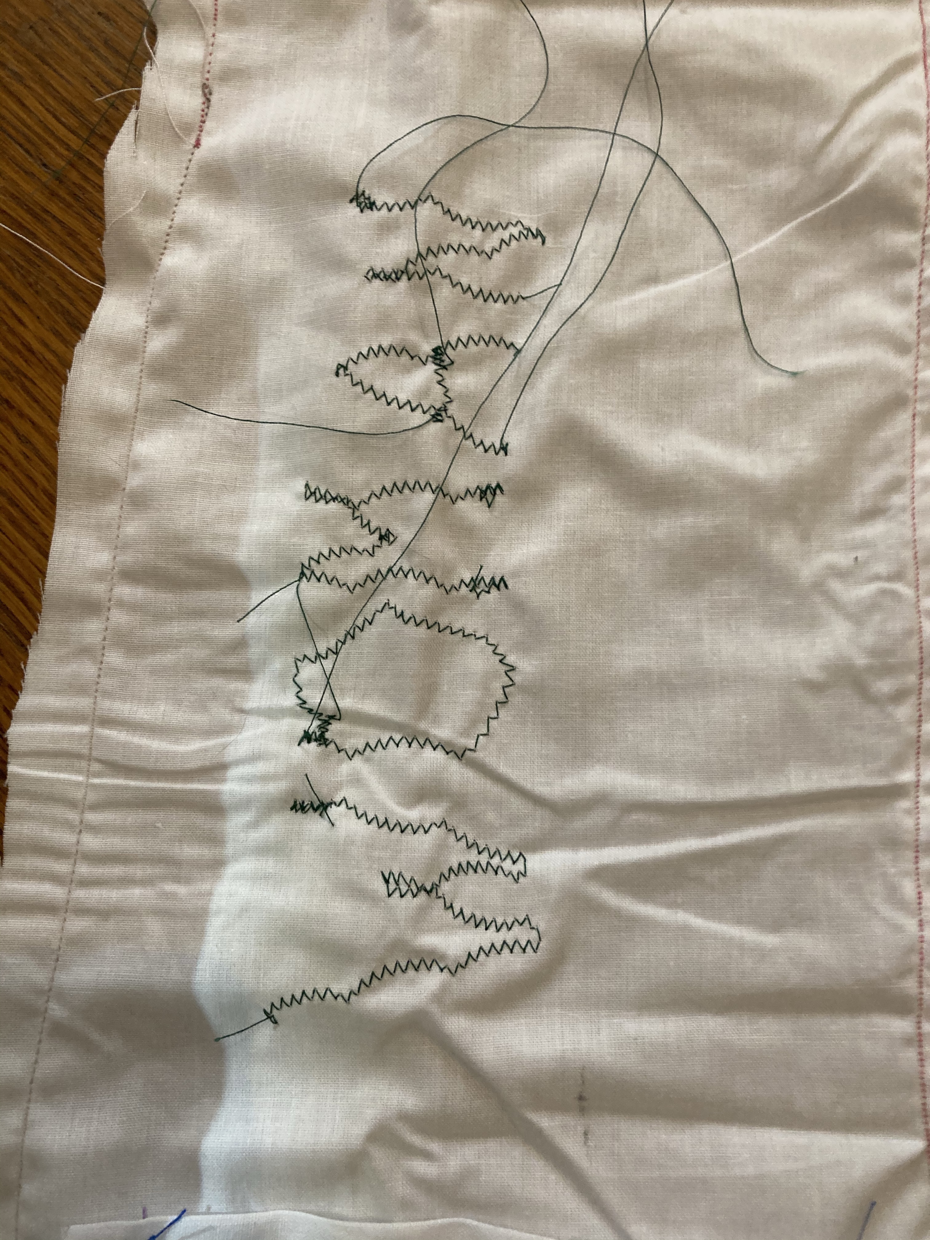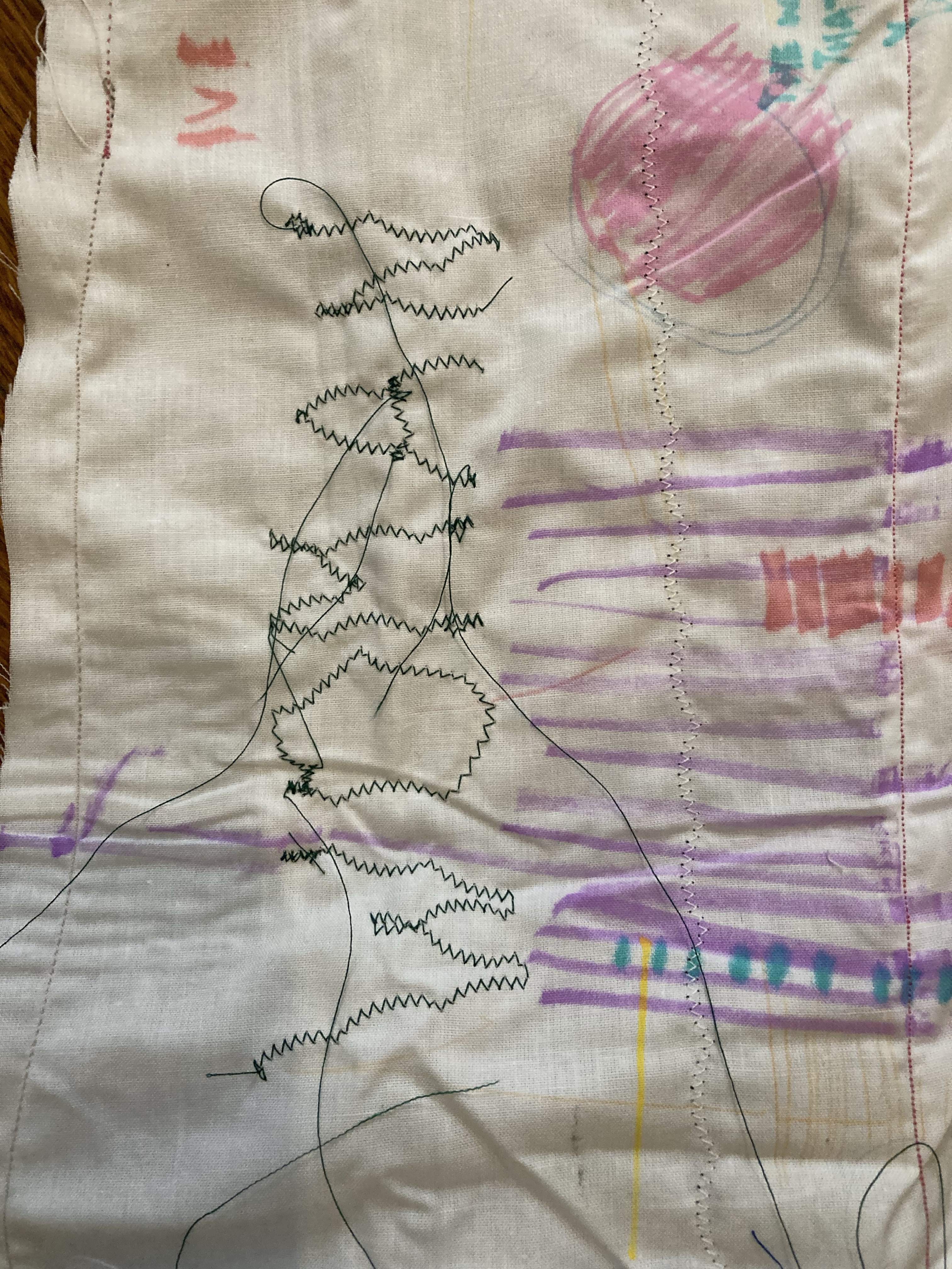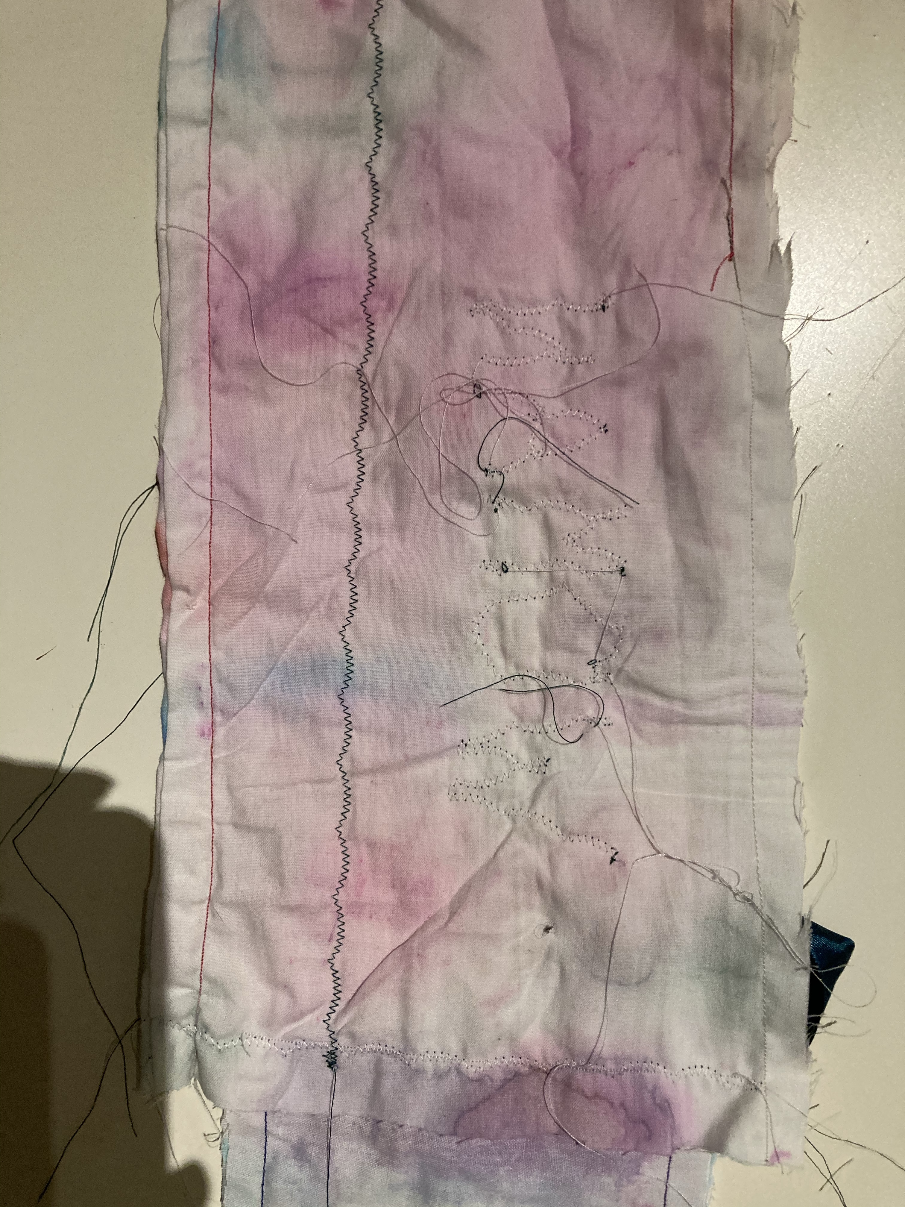 My intention was to create a bandeau top which could also be seen a binder. As I am working with strong gender related themes, I wanted to express my own experience with gender and being non-binary through text, the type of garment, and how I modelled it on my own body. Using aesthetics of my project work, I machine sewed the word ‘WOMAN’ on the front – linking to my project title and the exploration of womanhood. By showing my arm pit hair, it contradicts the gender ‘norms’ society has placed on us and the view of what a woman should be/how they should look.